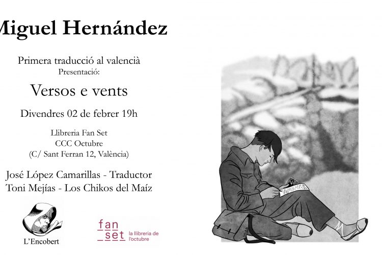 L’Encobert reivindica la valencianitat dels autors castellanoparlants El pròxim divendres 2 de febrer, a les 19 h, es presenta la primera traducció al valencià de l’obra de Miguel Hernández: Versos i vents. L’acte, que tindrà lloc en la Llibreria Fan Set de l’Octubre CCC (Sant Ferran 12, València), comptarà amb les intervencions de José A. López […]